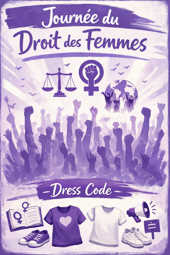 Nous invitons également tous les élèves et le personnel à porter les couleurs symboliques violet, rose et blanc afin de montrer notre engagement collectif pour l'égalité hommes-femmes. Un bijou, un accessoire ou une tenue rendront cette journée mémorable.
